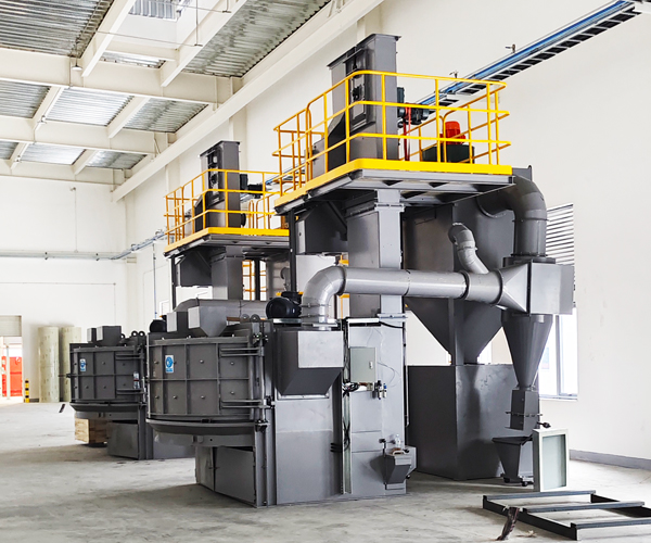 设备型号 Q3512 Q3516 Q3525 转台直径 Φ1200mm Φ1600mm Φ2500mm 转台转速 0.36r/min 0.36r/min 0.36r/min 转台最大载重 200kg 600kg 1000kg 清理工件外形尺寸 300x130x120mm 700x250x250mm 1000×800x400mm 抛丸器型号 Q034 Q034 Q034 弹丸直径 Φ0.5-1.5mm Φ0.5-2mm Φ0.5-2mm 提升机抛丸量 160kg/min 160kg/min(2台) 240kg/min(2台) 总功率(不含除尘) ≈11kw ≈19kw ≈32kw 机器外形尺寸 1200x1500x3600mm 2200x2700x4000mm 3200x2850x4500mm