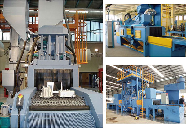 致的金属光泽,提高了涂饰质量与防腐效果。被清理件以自动、连续不间断方式通过抛